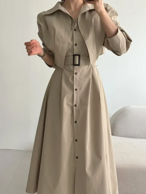ベルト付ボレロネックボタンフレアワンピース・p1909538