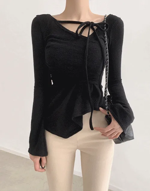 ワンショルリボンタイスリムTシャツ