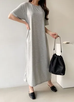 ボクシーマキシロングルーズ半袖無地ワンピース・K1930376