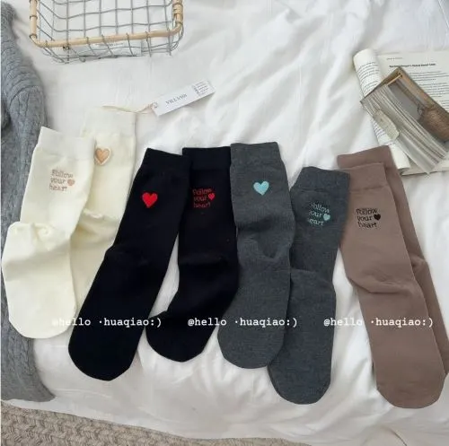 アシメレタリングハート刺繍ソックス