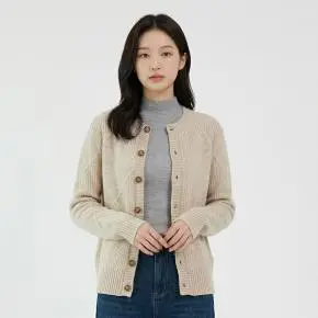 ニットボタンラウンドネック長袖ケーブルカーディガン・S1950607