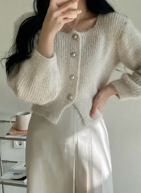 アンゴラ風ラウンドネックカーディガン