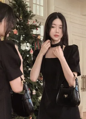 スクエアネックパフ半袖ミニワンピース