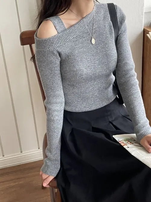 アンバランスリブオフショルニット