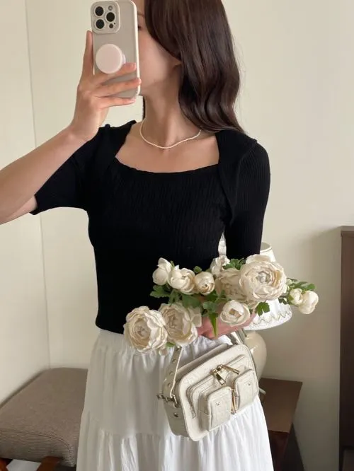 スクエアネック半袖スリムニット・S1930732