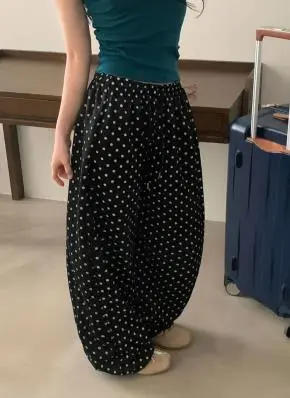 2WAYコットンオーバーサイズウエストゴムドローストリングピンタックバルーンドットパンツ・S1943216