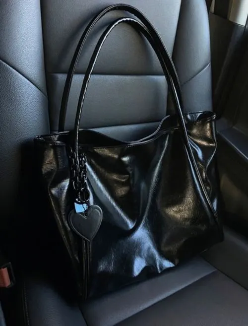 ハートチャーム付ブラックトートバッグ