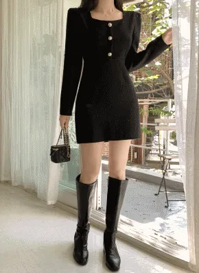 スクエアネックボタンツイードミニワンピース