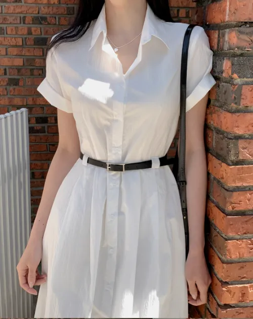 ウエストタック半袖シャツワンピース・p519054