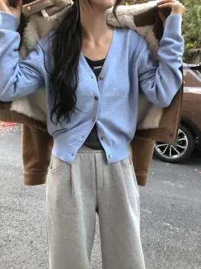 ボタンVネックショートルーズ長袖カーディガン