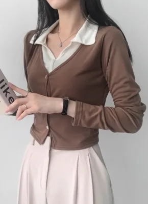 シャーリングレイヤード風ラウンドネックカラーカーディガン・S1959318