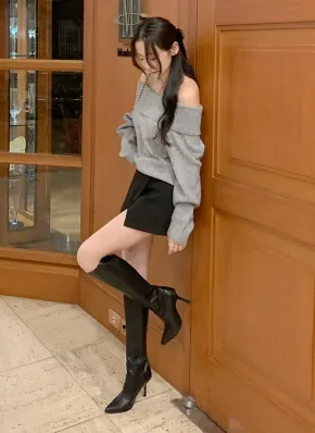 アシメスリットショルダーシャギーニット