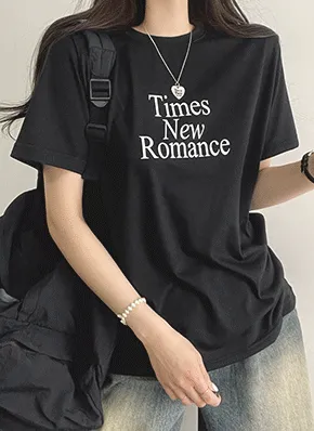 ラウンドネックルーズ半袖レタリングTシャツ