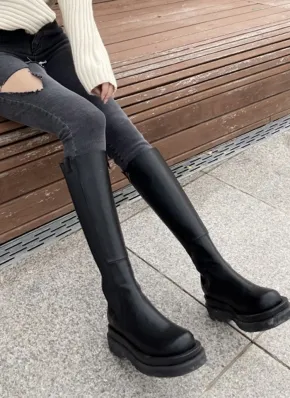 プラットフォームロングブーツ