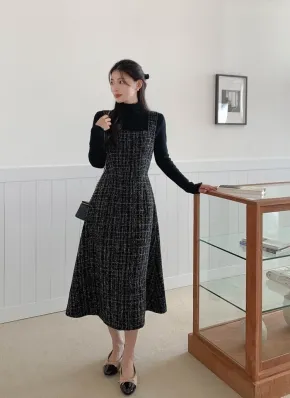 ツイードカラーレイヤード風Aラインワンピース