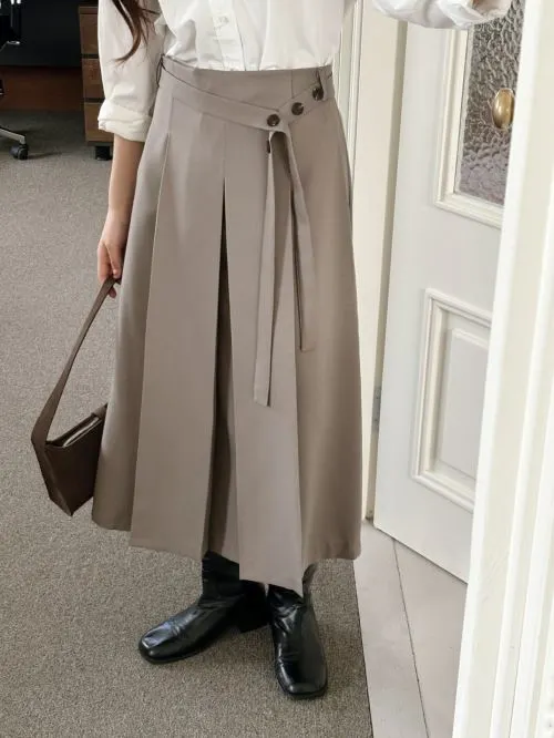 ウール混ボタンラッププリーツバックゴムロング無地スカート・S1955065