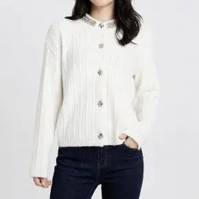 ニットキュービックボタン長袖ルーズビジューボタンカーディガン