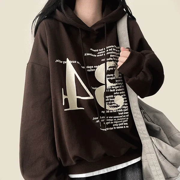 コットンフードオーバーサイズドローストリングプリントパーカー