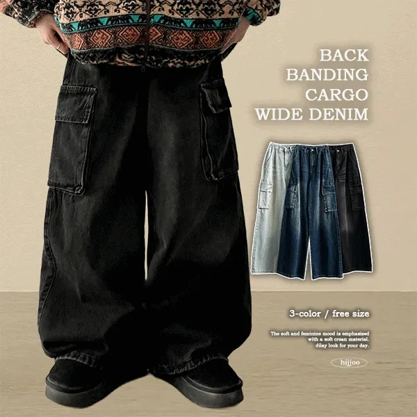 ドローストリングウォッシングワイドデニムパンツ
