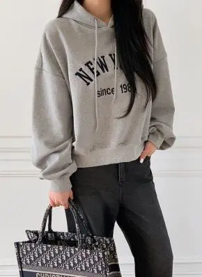 コットンフードドロップショルダー長袖ルーズオーバーサイズドローストリングカンガルーポケットレタリングパーカー