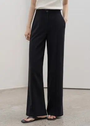 ポケットラインワンボタンワイドフェイクポケットバックポケットヒドゥンバンディング無地スラックス・S1963956