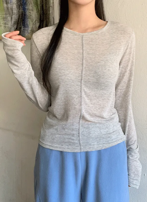 ラウンドネック長袖ベーシックラインステッチTシャツ