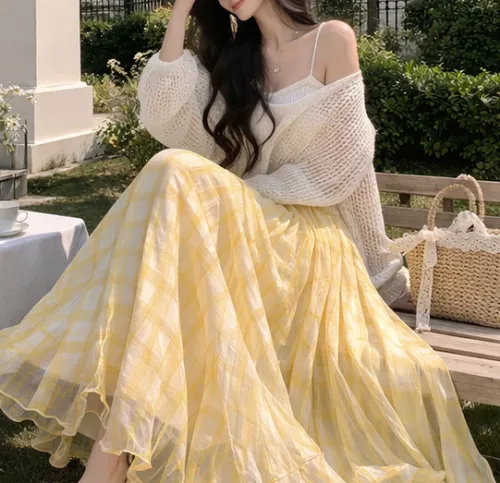 ウエストゴムロングルーズフレアAラインチェックスカート・B1966828