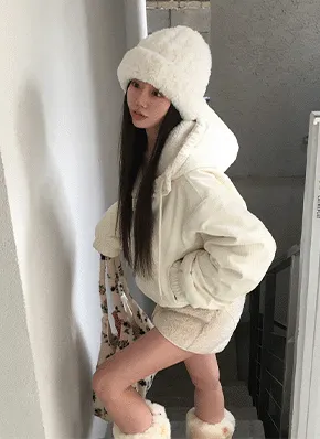 フードドローストリングボクシールーズ長袖ドットジップパーカージャンパー