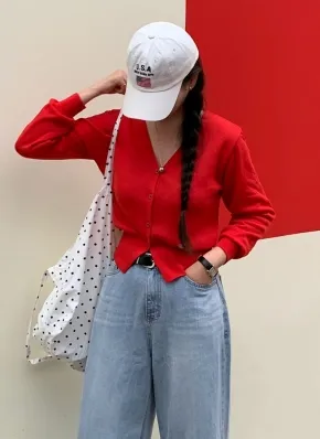 Vネックルーズ長袖カーディガン