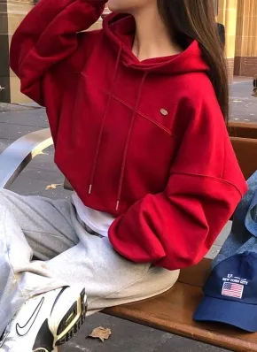 ラウンドネック半袖クロップド無地Tシャツ
