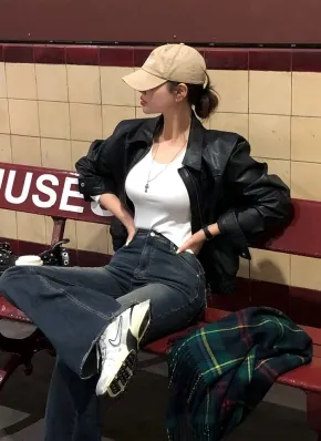 リブスリムラウンドネックノースリーブ