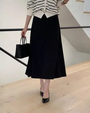 ゴムロングフレアAライン無地スカート