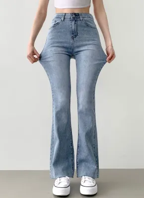 2TYPEハイウエストウォッシュフレアデニムパンツ
