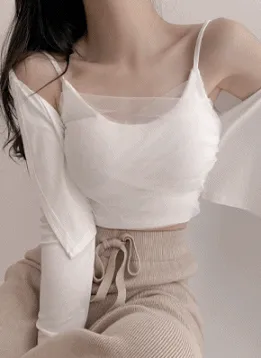 オープンカーデ&カップ内蔵チュールキャミSET
