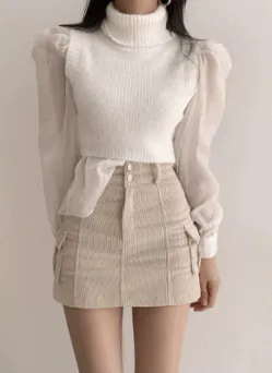 ベルト付ニットノースリーブワンピース&パフアンバランスシャツSET