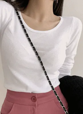 ストラップUネックエンボス半袖Tシャツ