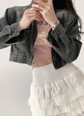 ビンテージウォッシュクロップドデニムジャンパー