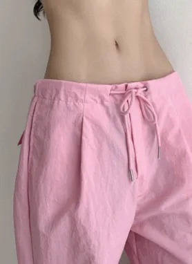 サイドストリングピンタックナイロンパンツ