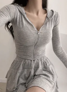 スリムクロップドジップパーカ&スカートパンツSET