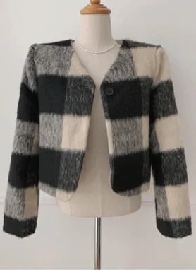 キルト裏地ウール混チェックワンボタンジャケット