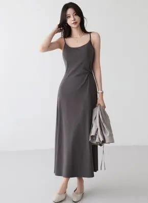 ロングツイストAライン無地カラーキャミワンピース