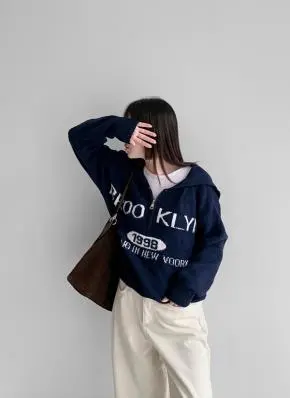 ハーフジップセーラーカラールーズニット