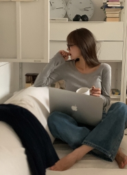 ボートネックベーシック無地カラーTシャツ・K1936918