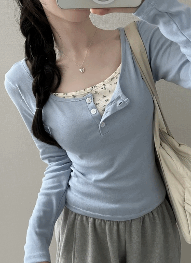 花柄レイヤード風ヘンリーTシャツ・p708848