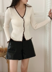 スカラップ配色Vネックカーディガン・p016264