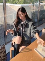 配色リボンフードニット・p693555