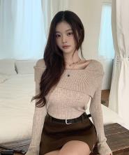 リブ長袖スリムオフショルダーニット・S1943036