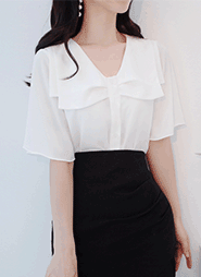 オープンカラーラッフルブラウス・p1909923